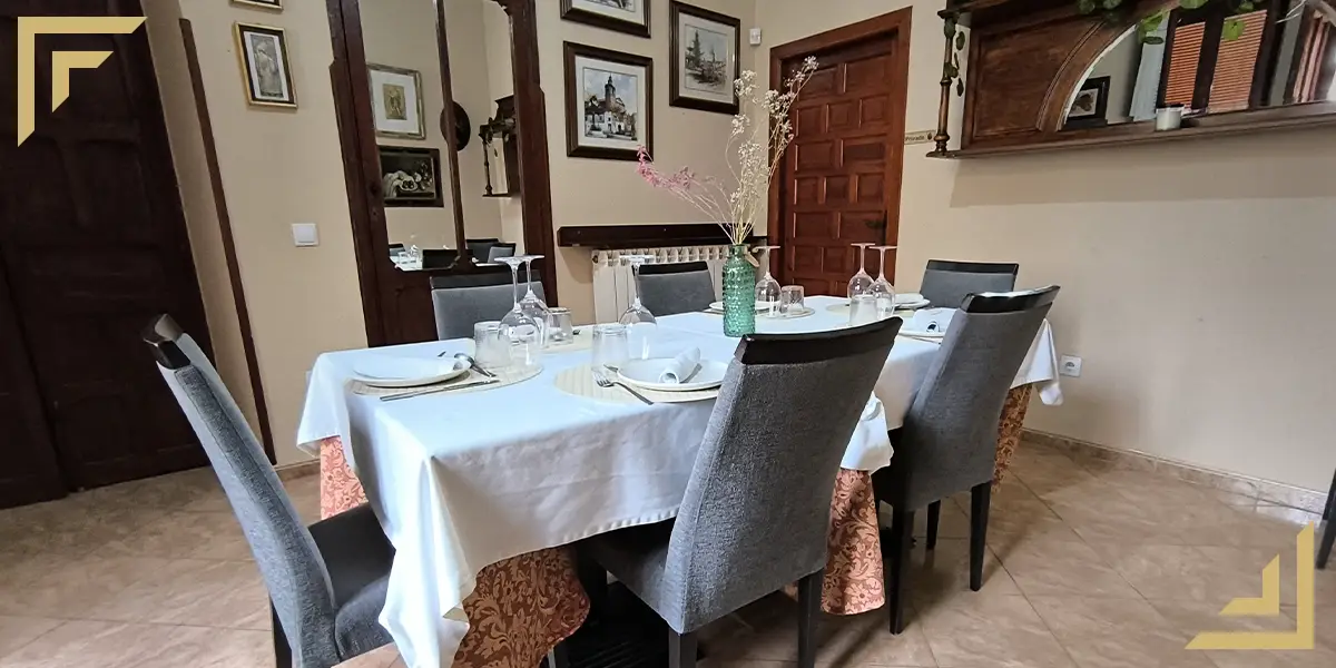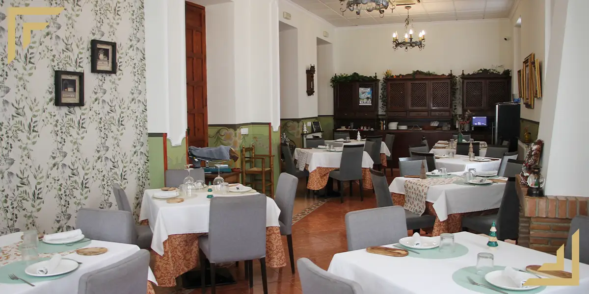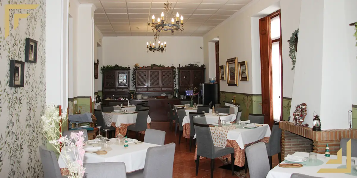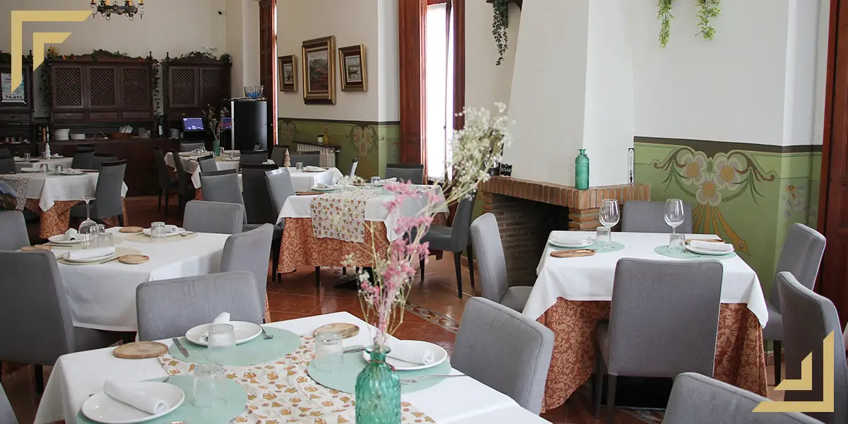 El restaurante dispone de un salón principal y otro privado, con una capacidad total es de 60 comensales, ambos salones son muy acogedores y como en el resto del palacete el tiempo parece detenerse y transportarnos a otra época envolviéndonos en su historia. En verano se habilita el jardín como terraza, en ella se puede cenar con una temperatura agradable y mientras lo haces puedes contemplar la escalinata con su fuente central y la fachada del palacete.
